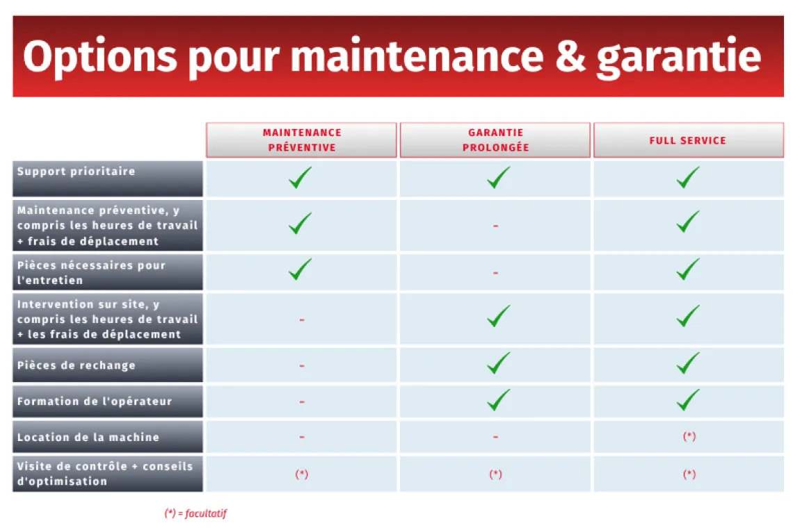 Un processus de production performant commence par des machines fiables. Chez Presa, nous savons que la maintenance préventive est la clé de la continuité et de la tranquillité d’esprit. C’est pourquoi de plus en plus d’entreprises optent pour un contrat de maintenance. Vous avez ainsi la certitude que l’entretien périodique est planifié à temps et vous évitez les arrêts imprévus. Car prévenir reste toujours mieux que guérir.